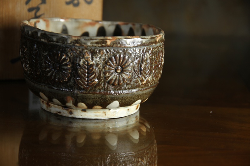 菊葉浮雕:碗身裝飾有細緻的菊花與葉片的浮雕紋路(Kikuha Relief)