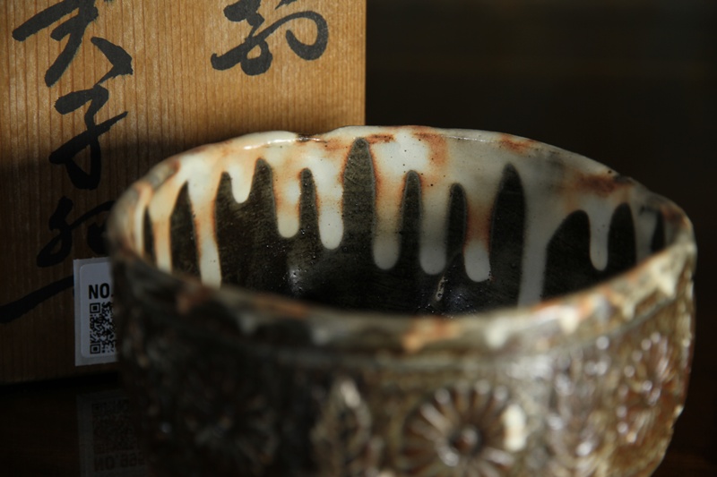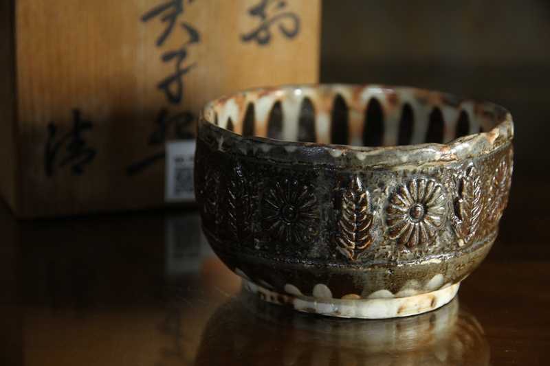 菊葉浮雕:碗身裝飾有細緻的菊花與葉片的浮雕紋路(Kikuha Relief)