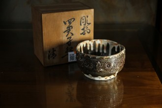 這款茶碗結合了日本著名的陶瓷產地「瀨戶燒」工藝與精緻的裝飾技巧: